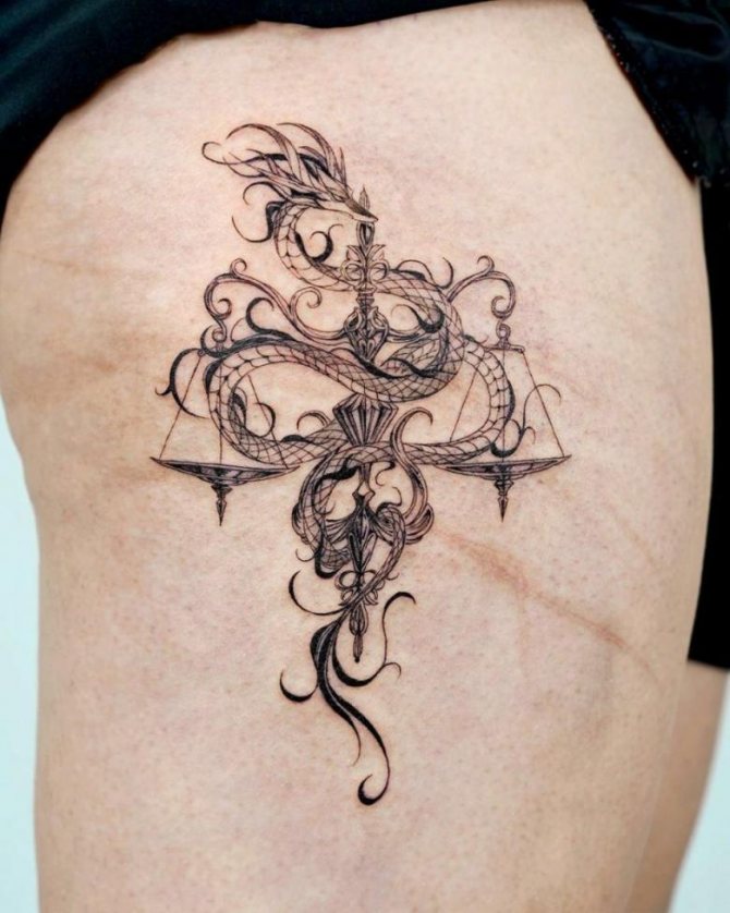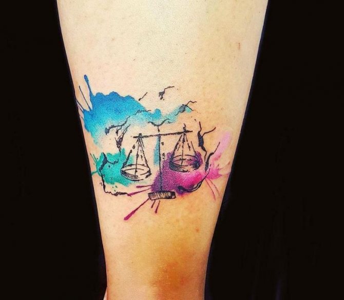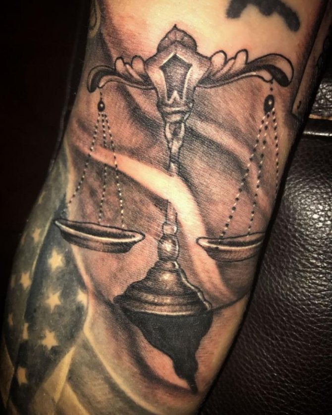 Tatouage avec des écailles Le tatouage d'une balance en forme d'échelle oblige simplement son propriétaire à regarder les situations sous différents angles. Si vous recherchez l'harmonie, si vous souhaitez équilibrer leurs énergies intérieures, ttatouage d'écailles - Juste ce dont vous avez besoin.