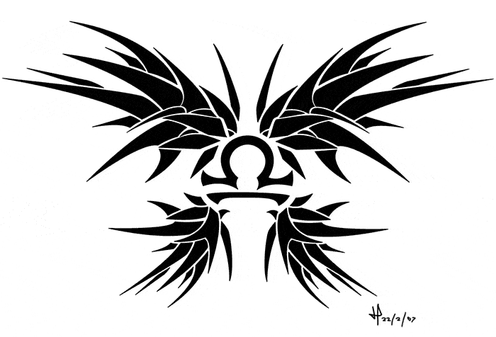 Le symbole écrit du signe zodiacal de la Balance est le glyphe, qui consiste en deux lignes parallèles. La ligne supérieure présente un demi-cercle incurvé qui ressemble au soleil se couchant sur l'horizon. Un tel tatouage, comme les exemples précédents, peut être conçu avec ou sans l'utilisation de détails supplémentaires. Si vous aimez ce dernier, considérez le glyphe qui se combine originellement avec des ailes d'ange, des inscriptions, des fleurs et des tresses, le glyphe qui orne la Balance et d'autres idées.