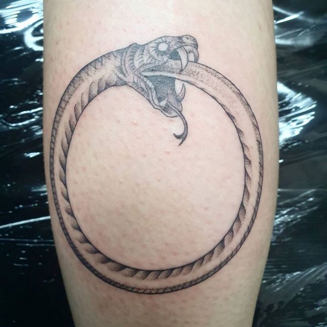 L'autre tatouage symbolique le plus populaire est celui qui fait référence à l'Ouroboros. Il s'agit d'un serpent ou d'un reptile qui se mord la queue, formant ainsi un cercle. L'Ouroboros symbolise le cycle éternel de toutes les choses et la façon dont tout retourne à son commencement. Il trouve son origine dans l'alchimie et représente la lutte éternelle du début à la fin et vice versa.