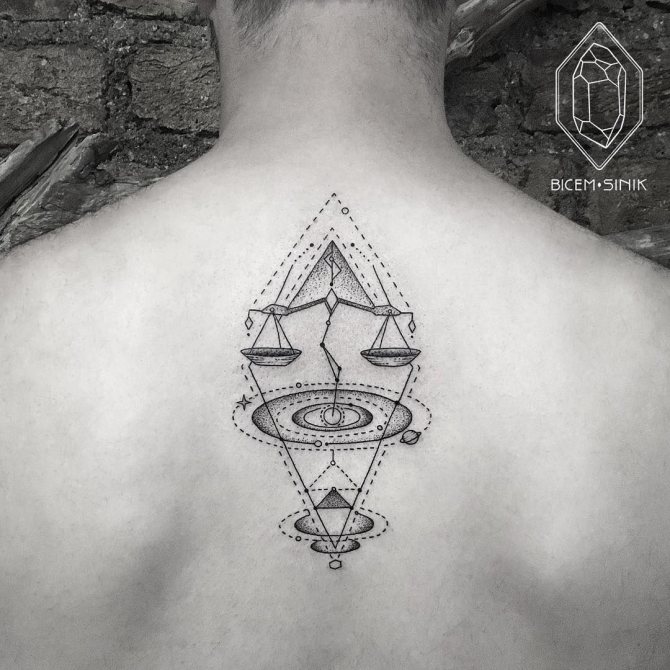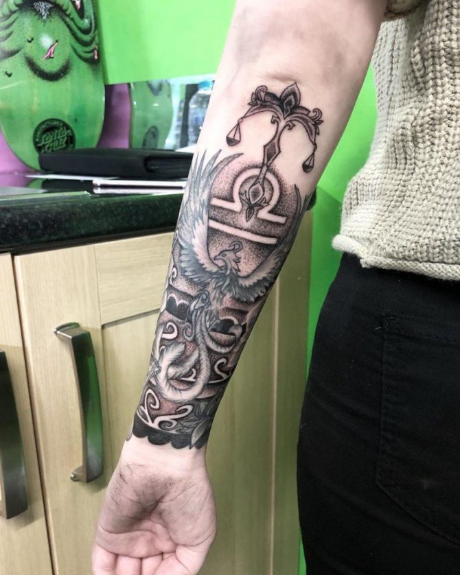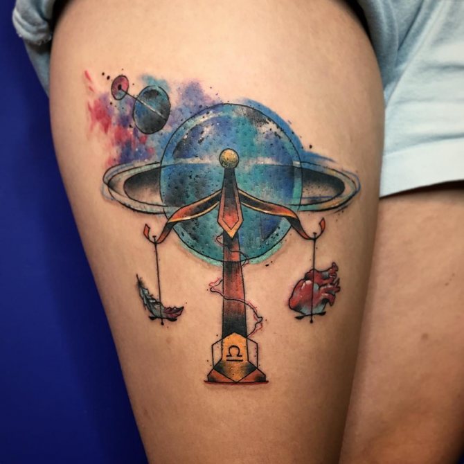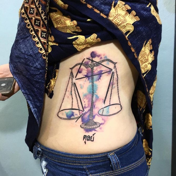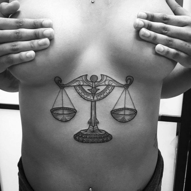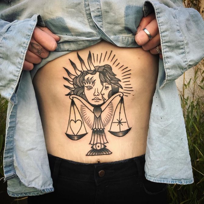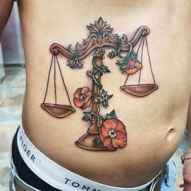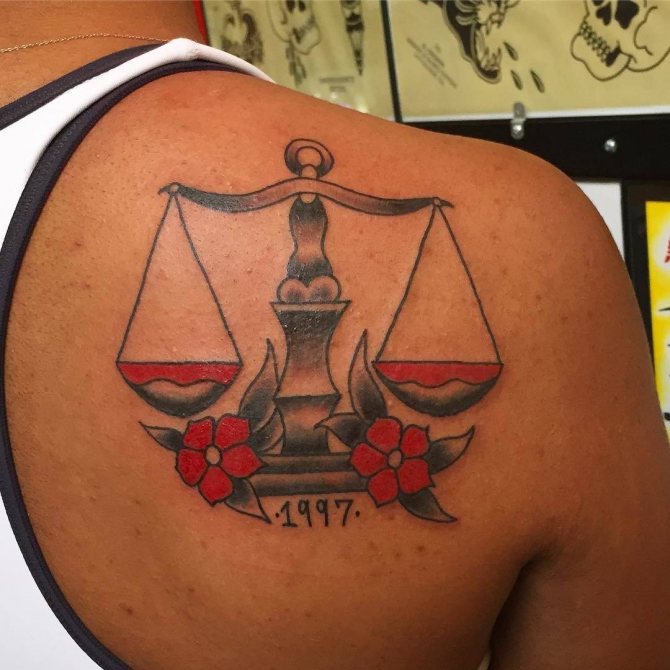 Selon les descriptions astrologiques, la Balance a le sens de l'humour et de l'auto-évaluation critique. Ils ont un sens aigu du monde et s'efforcent de créer de la beauté autour d'eux. Les Balance sont souvent des designers, des maquilleurs, des coiffeurs et des graphistes. En se tatouant sur le corps, les Balance veulent montrer leur individualité, souligner le caractère unique de leur personnage.