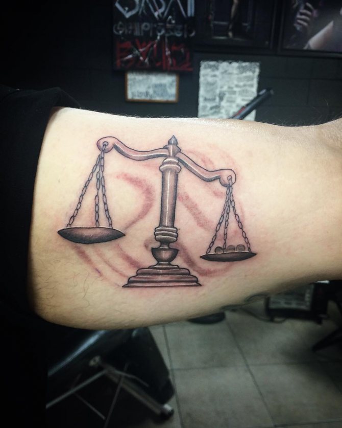 Les propriétaires de tatouages Balance prennent soin de leur monde intérieur, ils sont généralement polyvalents, sur tout ils ont leur propre point de vue. La Balance sur le corps symbolise l'harmonie intérieure, l'équilibre du pouvoir et de l'énergie.
