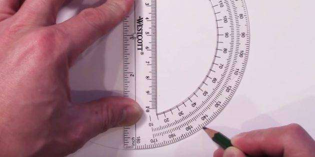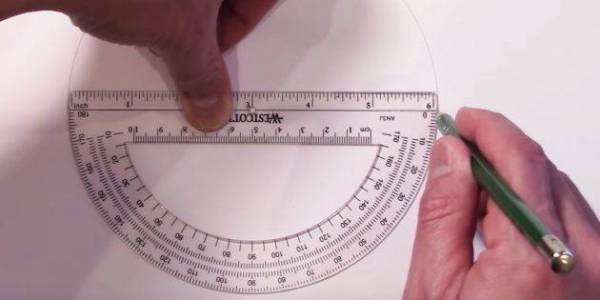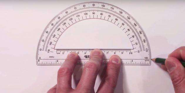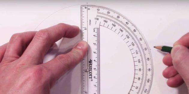 Placez un rapporteur sur le papier et tracez une partie circulaire de 0° à 180°.