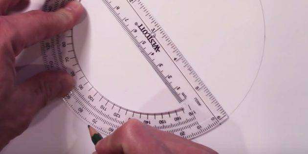 Déplacez l'aiguille vers le point gauche et faites une marque en bas à gauche du cercle. Répétez la même chose sur le côté droit.