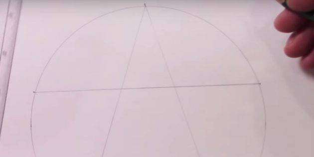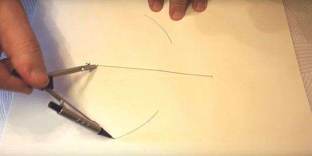 Répétez l'opération de l'autre côté, en plaçant l'aiguille au centre du cercle. Tracez une ligne verticale à travers les intersections des croquis.