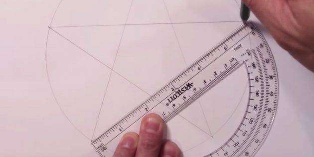 Répétez la dernière étape et faites une autre marque sur la circonférence en 72°.