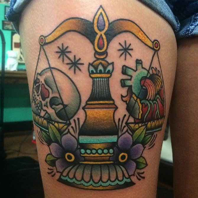 Le tatouage de la Balance est une excellente solution pour ceux qui souhaitent équilibrer leur vie. Le tatouage avec un bol sera un talisman pour les joueurs enclins à des actions impulsives. Faites-vous tatouer la balance si vous voulez que votre vie soit calme et mesurée.