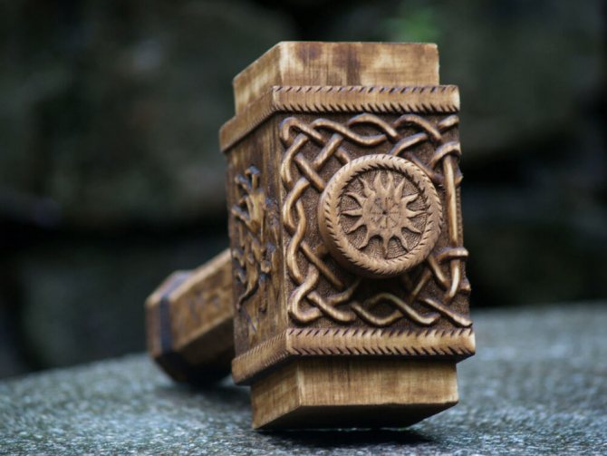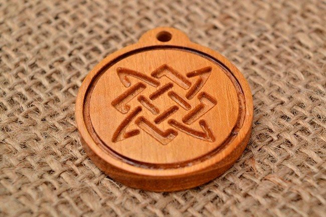 Svarog, à qui est dédiée une puissante amulette, se distinguait du reste du panthéon par son amour du travail de ses propres mains, sans recours aux talents divins. Il a donné à ses enfants un joug, une charrue, il leur a appris à travailler la terre, à obtenir et à récolter. Il leur a donné des armes, leur a appris à défendre leur patrie et à protéger leurs familles des ennemis. Les Slaves croyaient qu'il avait créé le feu, la terre et la lumière du jour. Chaque source de feu vivant est le sanctuaire de Svarog.