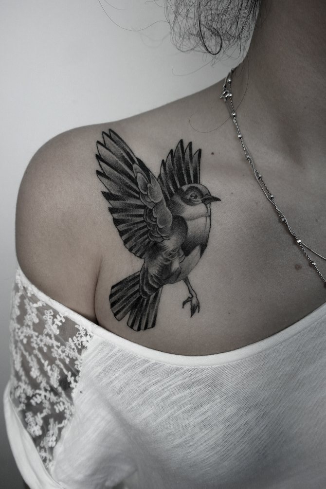 Lorsque vous regardez le tatouage d'un petit oiseau dans une version classique grise ou colorée, vous pensez involontairement à la signification d'un tel dessin pour nos ancêtres, car l'image d'un moineau était très populaire dans un passé lointain. Dans les mythes et légendes, on trouve souvent une référence à l'image d'un moineau et des dieux. Grâce à sa position particulière dans la vie, à savoir le choix d'un couple pour la vie, le moineau était considéré en Grèce comme le compagnon constant de la déesse de l'amour et de la beauté - Aphrodite.