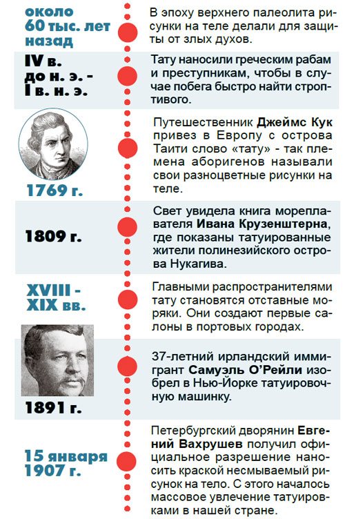 - 1907, 15 janvier. noble de Petersburg Evgeny Vakhrushev a reçu l'autorisation officielle de peindre un motif indélébile sur le corps, ce qui "laissait les patients satisfaits et heureux". C'est ainsi qu'est né l'engouement massif pour les tatouages dans notre pays.