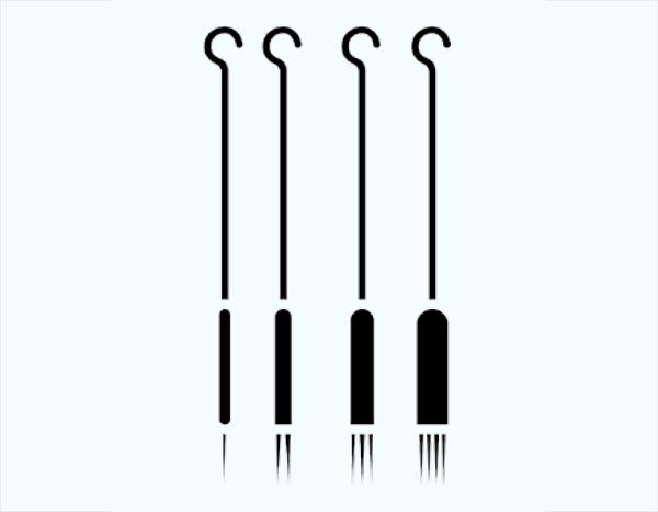 L'aiguille perce la peau jusqu'à 3000 fois par minute et insère l'encre une goutte à la fois, 1 à 2 millimètres vers l'intérieur. Pour les contours et les ridules, on utilise un petit groupe d'aiguilles (souvent trois) ou une seule aiguille. Pour l'éclosion et le remplissage, jusqu'à 32, ressemblant aux poils d'un pinceau.