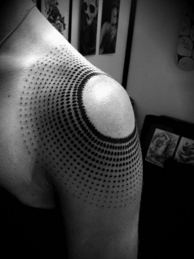 Ce qui est intéressant avec les dessins Dotwork, c'est qu'ils peuvent être vus sous différents angles. L'image peut être modifiée plusieurs fois. Les tatouages à pois et à chiffres sont également combinés. En reliant les points dans l'ordre, vous pouvez voir une image (similaire aux puzzles pour enfants).
