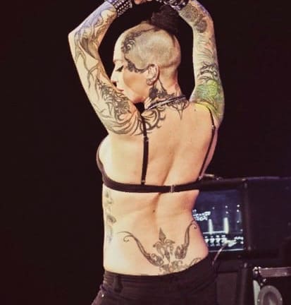 Le bas du dos de la chanteuse est décoré d'un motif symétrique.
