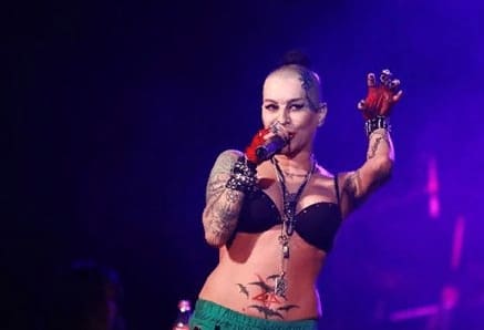 L'artiste a de nombreuses illustrations d'étoiles sur son corps - sur ses bras, son ventre et ses doigts. Ils symbolisent le dépassement des obstacles et la victoire. L'important est de placer le pentagramme correctement afin de ne pas en dénaturer la signification. En plus de ce symbole magique, elle possède trois six, des hiéroglyphes et des araignées.