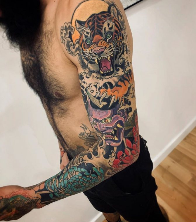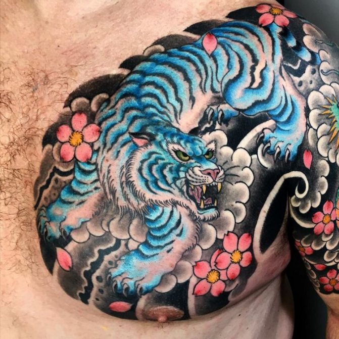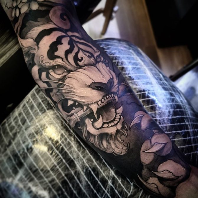 Les tatouages avec un tigre dans le style asiatique oriental ont une certaine spécificité et un certain effet. Ils étonnent presque tout le monde par leur luminosité, leurs détails et une certaine idée.