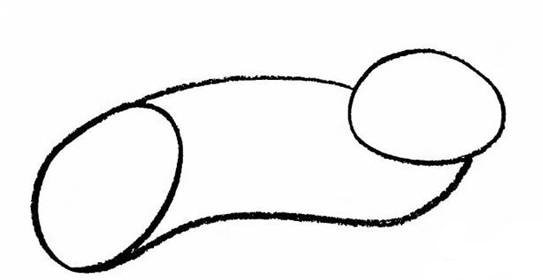 Dessinez d'abord deux ovales, légèrement inclinés l'un par rapport à l'autre, que vous réunissez comme indiqué. Il s'agit de la tête et du corps de l'animal.