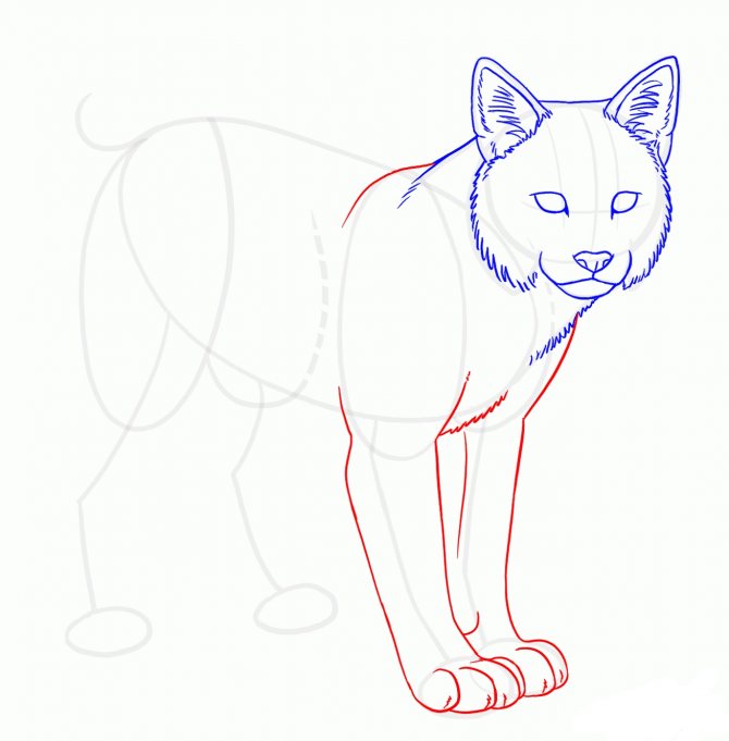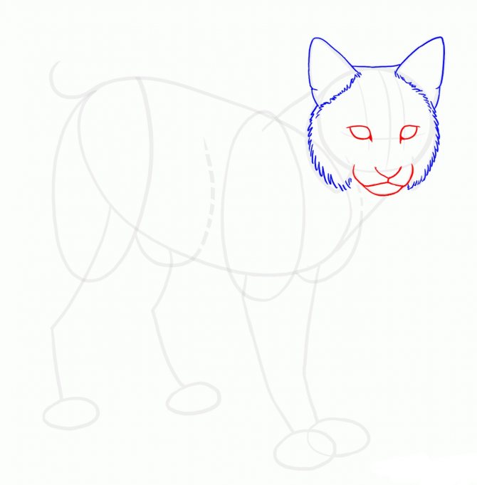 En travaillant sur les détails, il est logique de commencer par la tête. En contournant le contour par des traits courts, en traçant le museau, passez progressivement au torse.