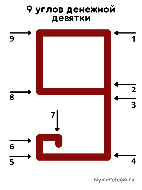 La technique du Neuf d'Argent - dessiner le chiffre 9 sur le poignet, permet d'atteindre le bien-être financier, d'améliorer la circulation des fonds et de régler son propre esprit pour attirer les bénéfices. Le neuf dans cette pratique a une signification profonde, contient le pouvoir du succès, de l'abondance et de la prospérité.