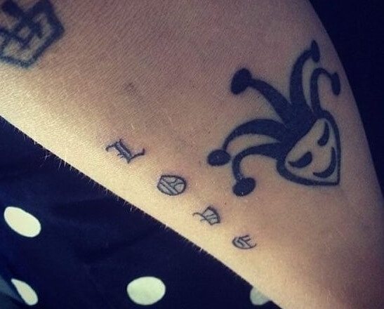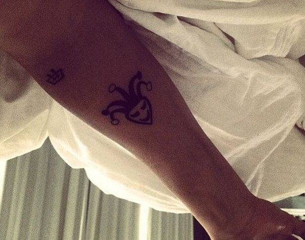 19. le bouffon était un homme qui se divertissait dans les cours royales auprès du roi et de la reine. Justin Bieber a un tatouage de bouffon qui représente son statut d'amuseur.