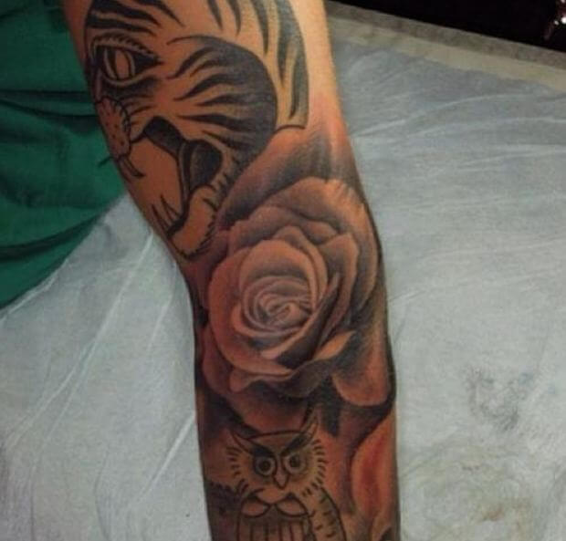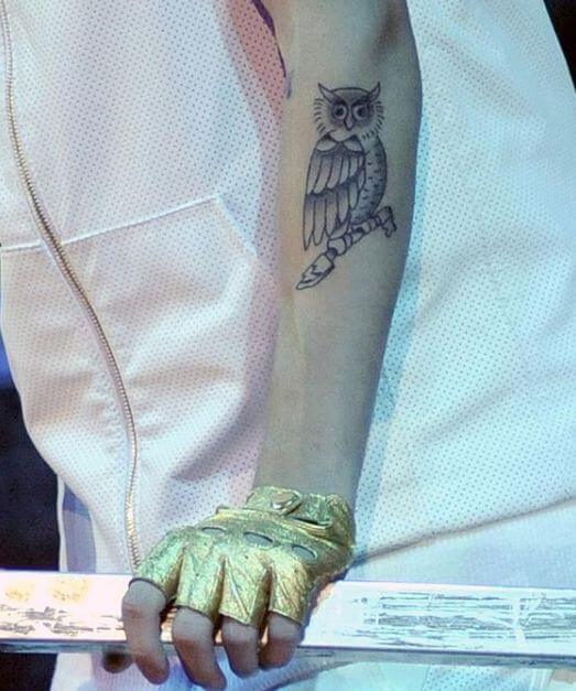 14. Plus tard, Justin a amélioré le tatouage de hibou sur son avant-bras droit en y ajoutant un tatouage de rose. Plus tard, il en a fait un tatouage sur sa manche.