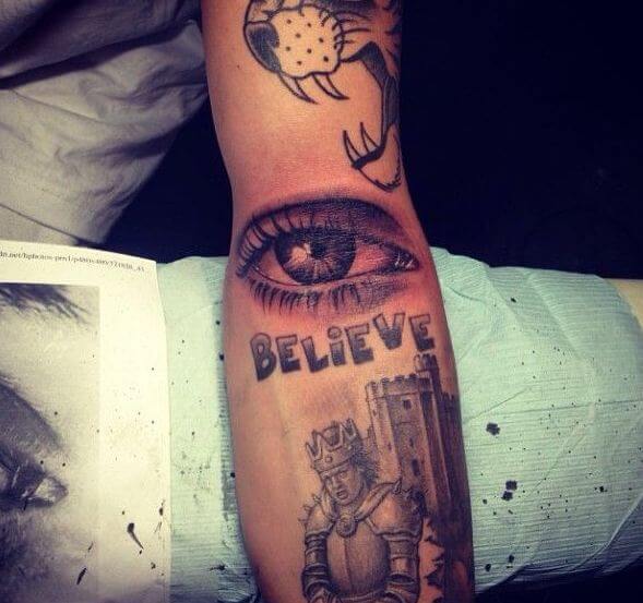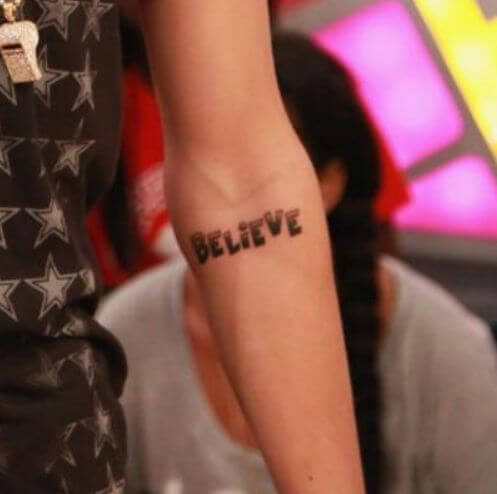 7. L'un des premiers tatouages de Justin Bieber était le mot "BELIEVE". Maintenant, ses fans sont appelés des croyants. Le mot était écrit sur son avant-bras gauche.
