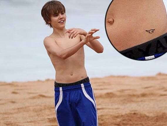 13. Parmi les premiers tatouages vus sur le corps de Justin figure un tatouage d'oiseau sur son abdomen droit. Ce tatouage sur sa poitrine est devenu instantanément célèbre parmi les fans.