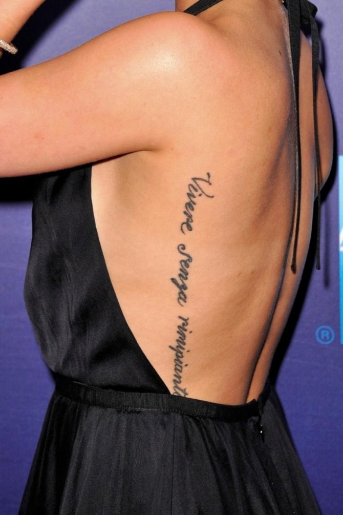 Hayden est très jolie, mais son tatouage est-il aussi joli ? Il est écrit "Vivere senza rimipianti", ce qui signifie en italien "vivre sans regrets". Il y a juste un problème : le mot "rimpianti" est mal orthographié ici. Hayden explique que c'est délibérément fait pour apporter de la fraîcheur et de la nouveauté à l'expression. Oui, bien sûr.