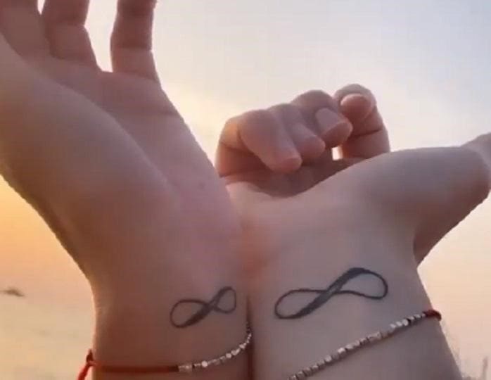 Et voici les dernières nouvelles du même réseau social - Olga Buzova et David Manukyan ont fait un tatouage en binôme sur le poignet. Le croquis était un signe d'infini plutôt banal. Le chiffre huit inversé signifie l'éternité. Dans ce cas, les musiciens ont décrit leur amour éternel de cette façon.