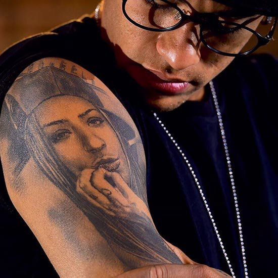 Le bras droit entier de l'attaquant brésilien est également dédié à sa famille. Sur son épaule se trouve un portrait de sa sœur Rafaella. "Cette photo, elle l'a postée sur internet, sans savoir que je voulais me faire un tel tatouage", a révélé l'attaquant brésilien.