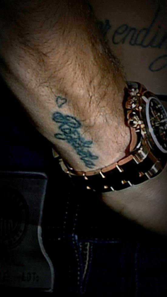 À côté, Neymar a un portrait de sa maman, tandis que juste en dessous, Neymar a les yeux de son père tatoués. Sur son avant-bras se trouve un portrait de son fils David Lucca.