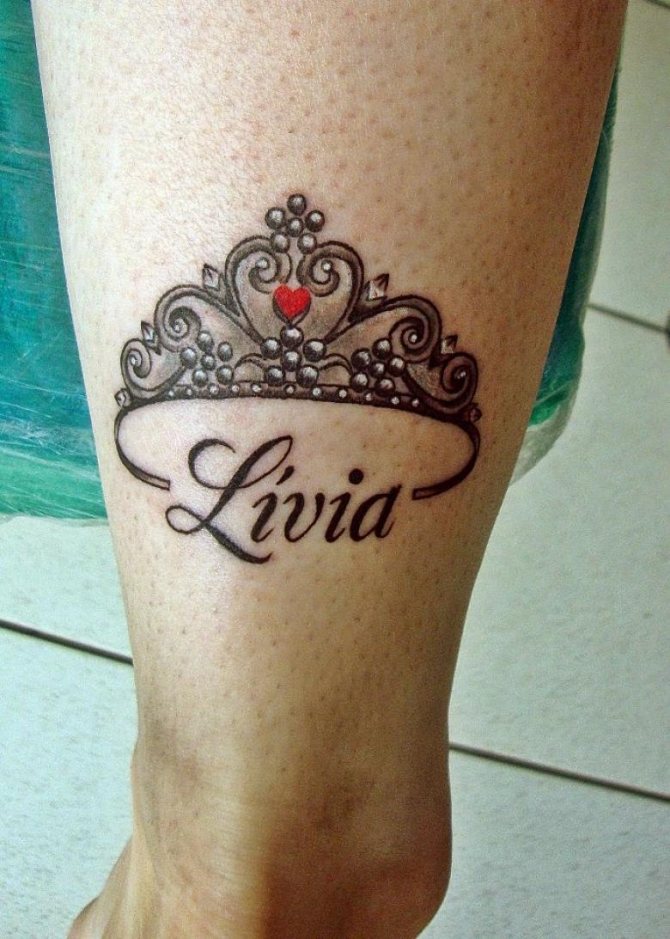 Parfois, le tatouage de la couronne est associé à des inscriptions anciennes, le plus souvent en latin. Certaines personnes trouvent approprié d'ajouter leur propre nom ou leurs initiales à côté de la couronne. Ces inscriptions sont généralement appliquées en raison du style original.