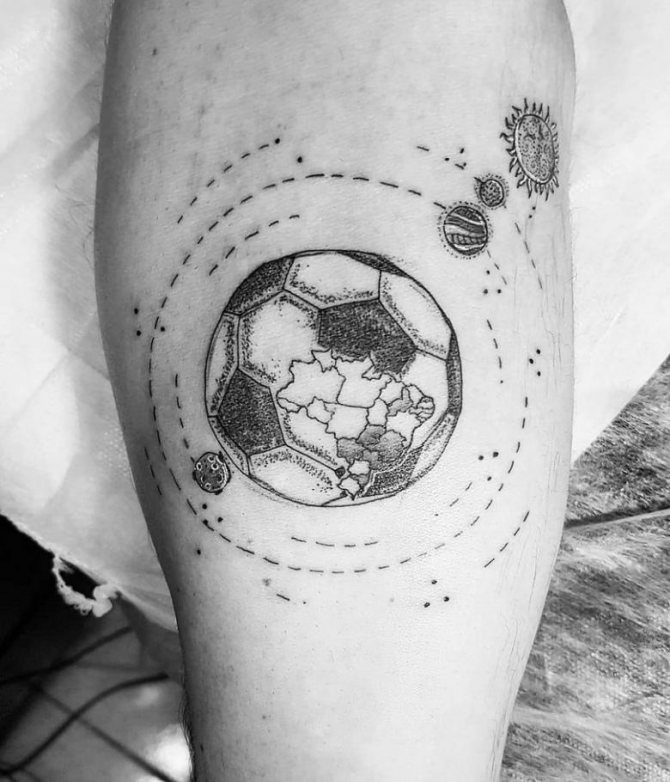 Parfois, les joueurs de football expriment leur attitude envers leur passe-temps favori sous la forme d'un tatouage similaire.
