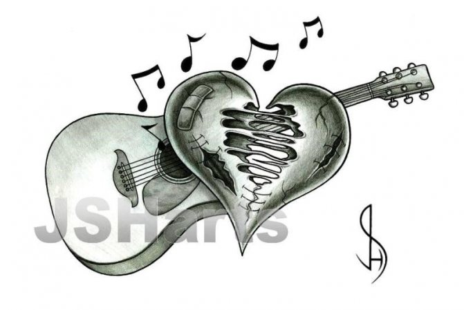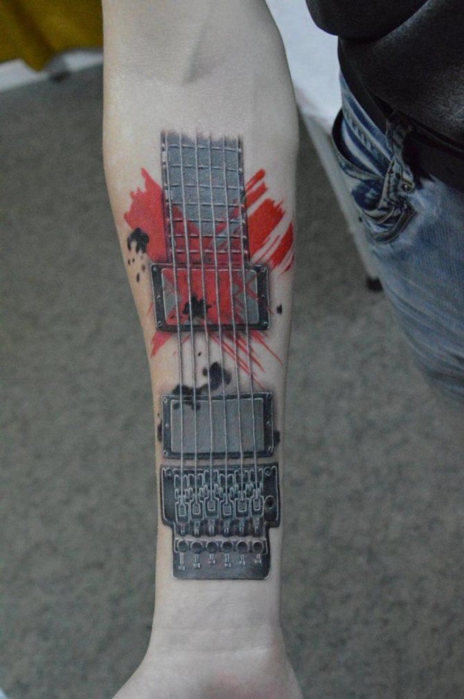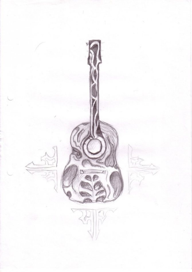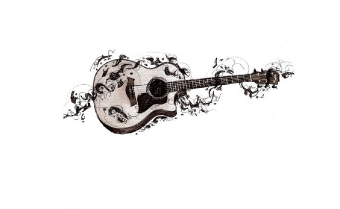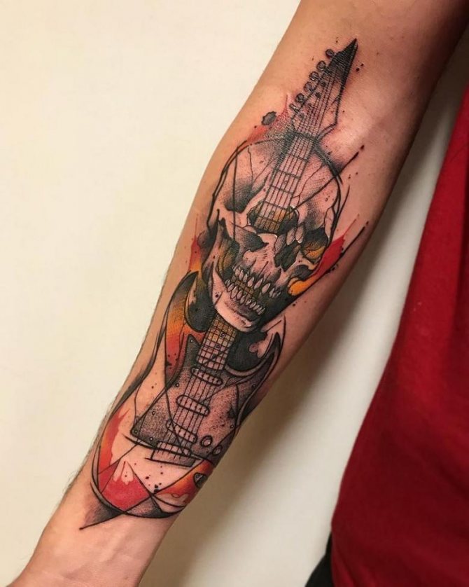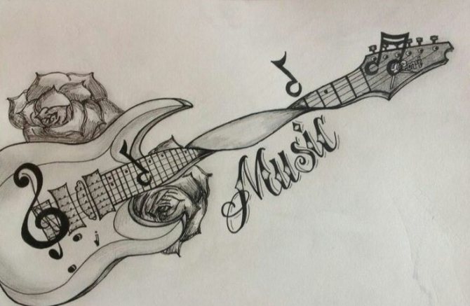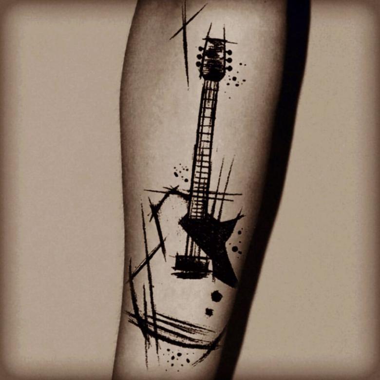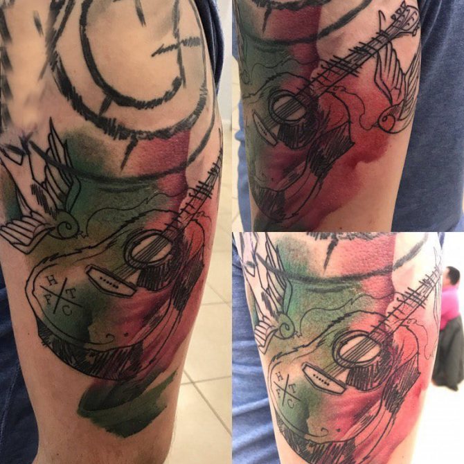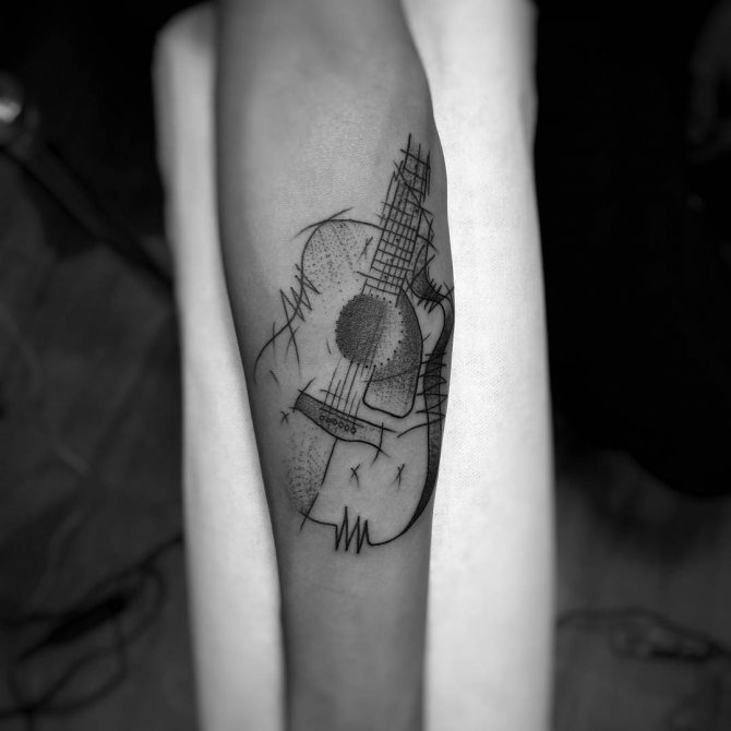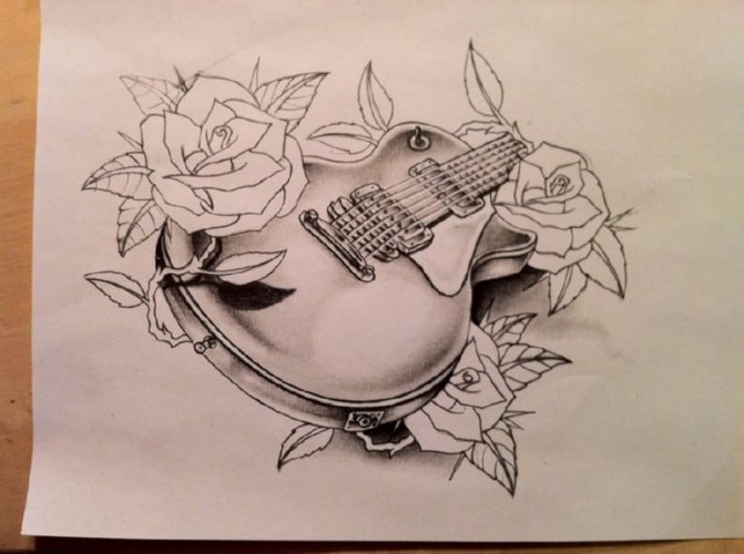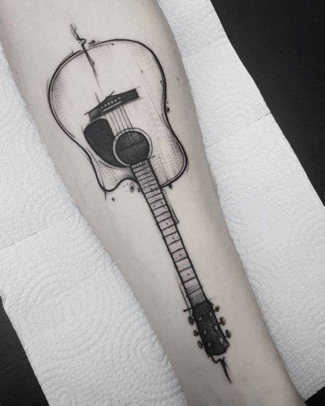 Certains mélomanes préfèrent bourrer l'instrument de notes et d'accords qui explosent dans les cordes de la guitare. Certains futurs tatoueurs réalisent un dessin à partir d'une photo de leur propre instrument ou utilisent un croquis tout fait.