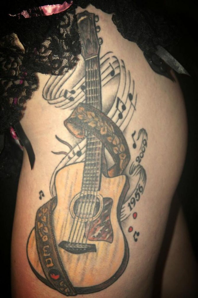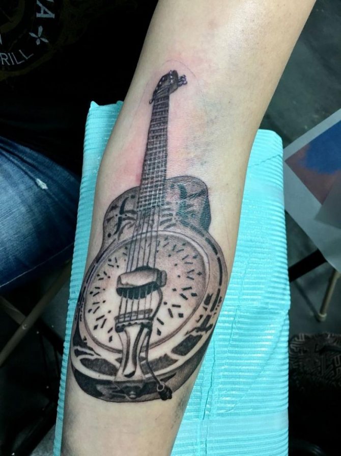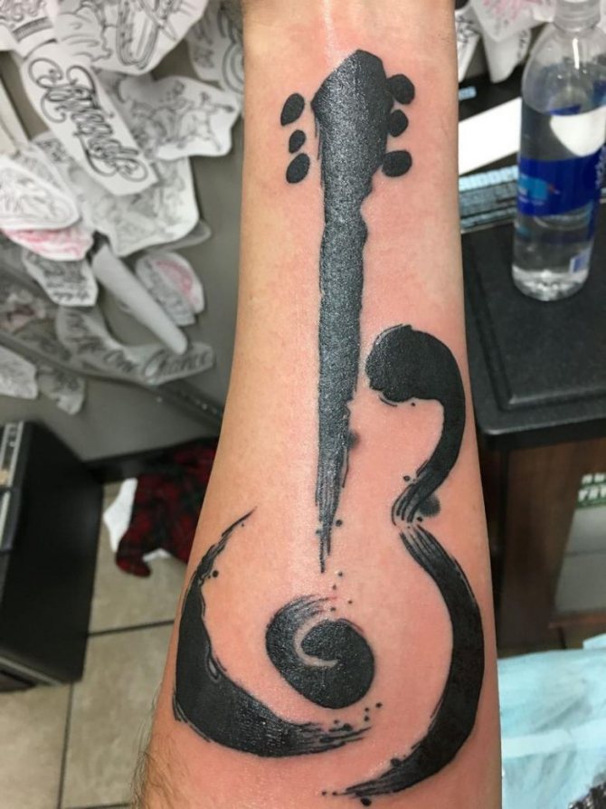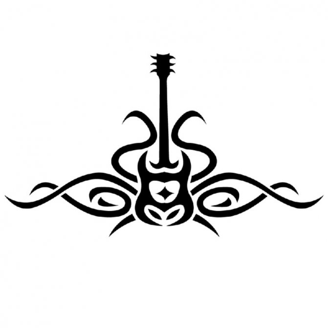 Une guitare peut transmettre l'organisation subtile de la nature du porteur du tatouage, dont les cordes de l'âme ne sont pas difficiles à toucher.
