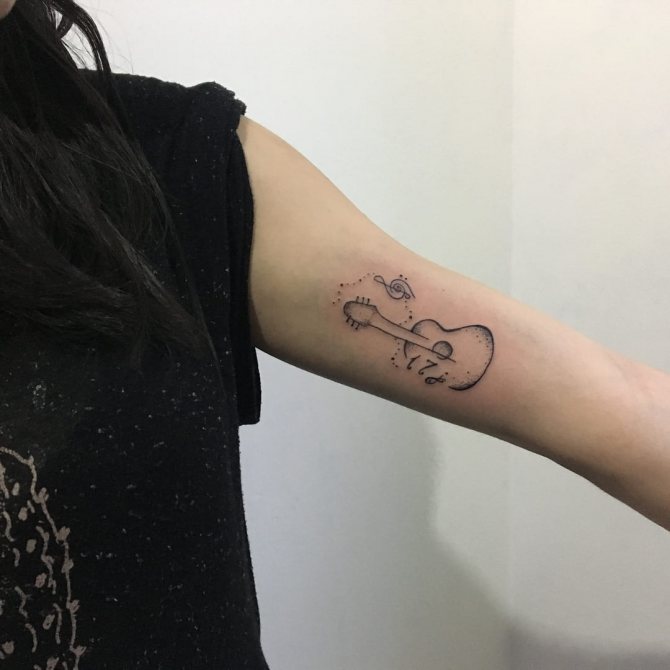 Quelle que soit l'interprétation, le tatouage de guitare convient aux personnes créatives, aux chercheurs qui sont capables de ne pas voir uniquement les manifestations extérieures de la vie et ont tendance à regarder l'essence des choses.