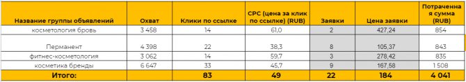 Le public le plus performant est celui des femmes âgées de 20 à 40 ans, géo - Moscou, avec des intérêts "permanents".