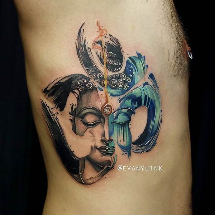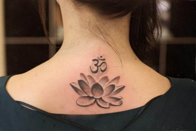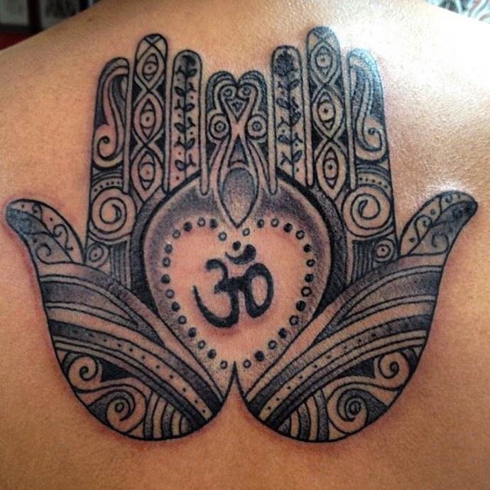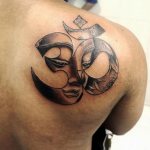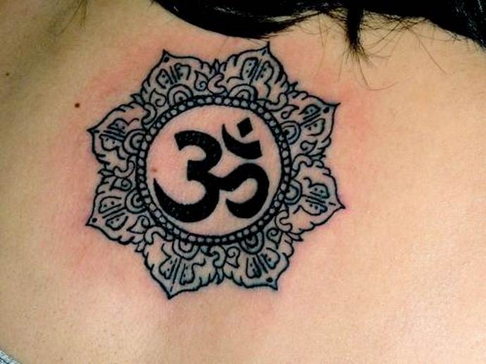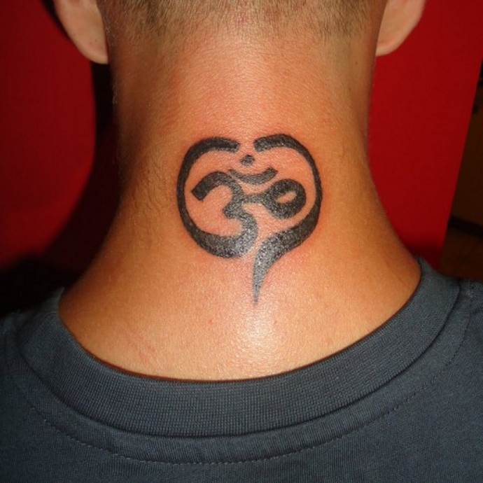 Comme le symbole unit les énergies masculine et féminine, sombre et lumineuse, il est porteur du sens de l'indivisibilité et de la globalité du monde. Cette personne est en train de faire une quête spirituelle, elle cherche son chemin vers Dieu. Le tatouage Om est un rappel de rester sur le chemin de la conscience, de faire le bon choix, de s'efforcer d'atteindre l'illumination même dans les situations les plus difficiles.