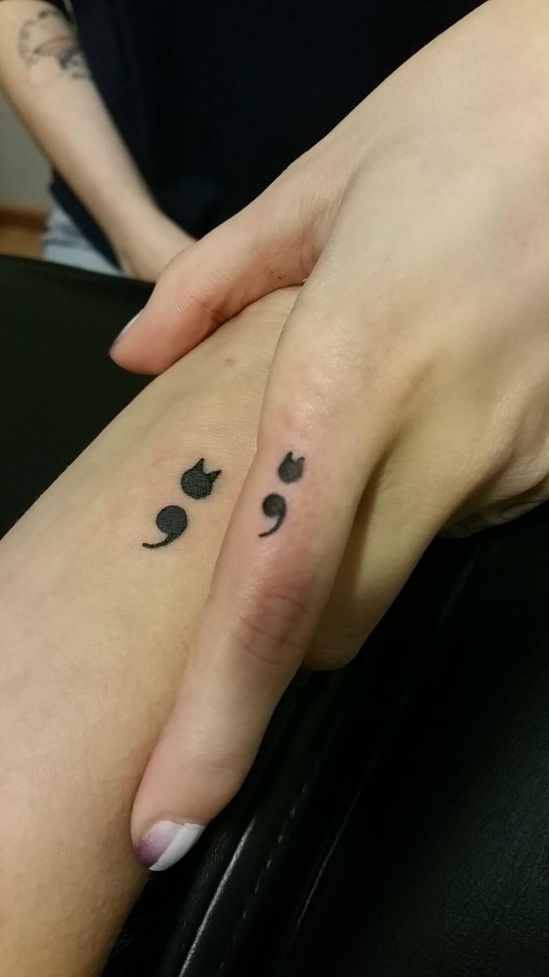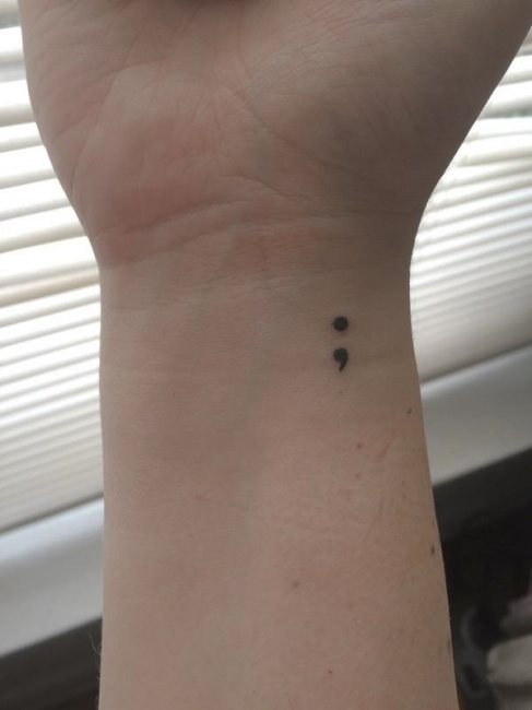 L'écrivain américain Parker Molloy a pu exprimer plus succinctement la signification d'un tel tatouage : "Récemment, j'ai décidé de me faire tatouer un point-virgule. Non pas parce que c'est à la mode (bien que je l'aie fait dernièrement), mais pour me rappeler les défis que j'ai relevés dans ma vie. J'ai été confronté à l'anxiété, à la dépression et à la dysphorie de genre pendant la majeure partie de ma vie. Parfois, des pensées suicidaires me visitaient. Des années plus tard, lorsque j'ai retrouvé ma santé mentale, le point-virgule me rappelle que j'ai traversé des périodes sombres dans ma vie, mais que je suis toujours là.