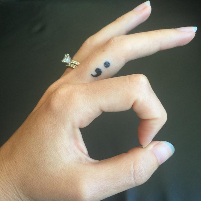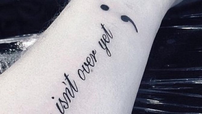 Le monde change. Le rythme de vie s'accélère. Beaucoup ne supportent pas la vitesse offerte. Le nombre de personnes dépressives est en augmentation dans le monde entier. Il faut s'attaquer à ce phénomène. Il existe des personnes spécialement formées à cet effet. Que signifie le tatouage du point-virgule dans ce cas ? Les personnes qui choisissent ce signe croient que le tatouage aide à maintenir la clarté mentale, à combattre l'envie de mettre fin à leurs jours.