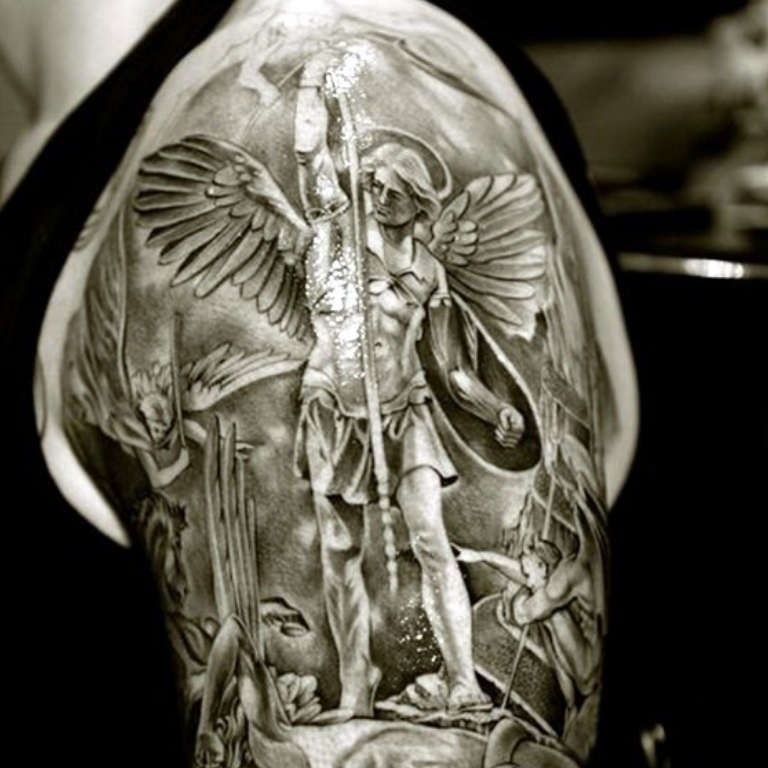 Les hommes qui se font tatouer un ange sont souvent capables de faire face à tous les défis de la vie. Ces hommes pensent qu'un ange gardien peut protéger leur corps aussi bien que leur âme. À son tour, la présence d'un tatouage de démon indique généralement seulement que l'homme veut s'exprimer. Une image spectaculaire qui n'a pas de signification aura fière allure sur les bras ou les épaules de tous les hommes.
