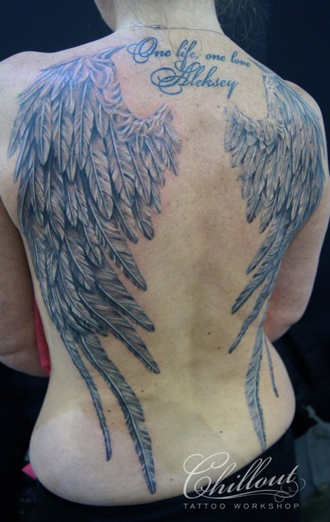 Les Égyptiens, mais aussi d'autres peuples du monde, associent les puissants à des divinités. Pour cette raison, la pertinence du tatouage sous forme d'ailes est appropriée dans le monde entier et surtout dans le monde chrétien. L'endroit naturel pour ce format de tatouage masculin est le dos.