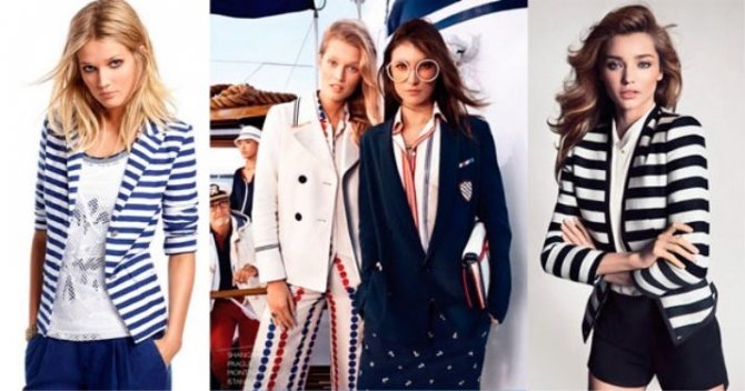 Chaque année, lors des défilés de mode, nous pouvons voir des mannequins montrer des tenues élégantes avec des rayures semblables à un body, ou des pantalons tendance de couleur ciel avec des nœuds de corde. Les références nautiques de cette saison sont tout aussi populaires.