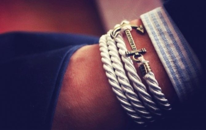 Les accessoires tendance peuvent être non seulement simples, mais aussi doubles ou triples. Ces pièces sont complétées non seulement par de petites ancres, mais aussi par d'autres détails décoratifs dans une veine nautique. Ils peuvent être décorés d'une barre ou d'une boussole.